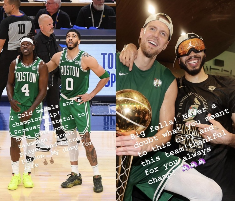 塔图姆对霍勒迪的赠言写到:“两枚金牌和一个总冠军!能成为你的队友我永远心怀感激。不止是伟大的球员,也是一个很好的人。你是我一辈子的兄弟????”